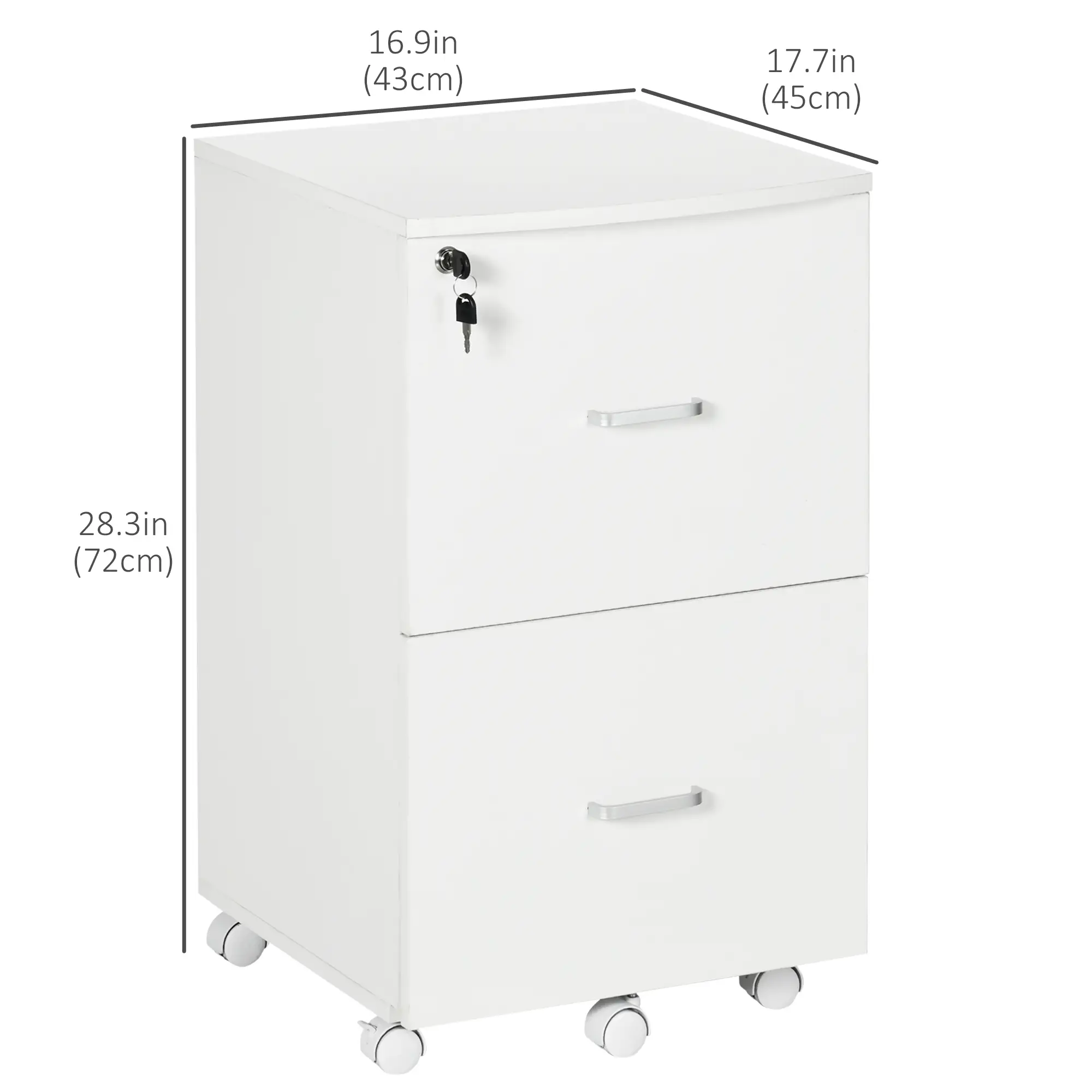 2 Drawer Mobile File Cabinet with Lock, Wood, Letter and A4 Size, White