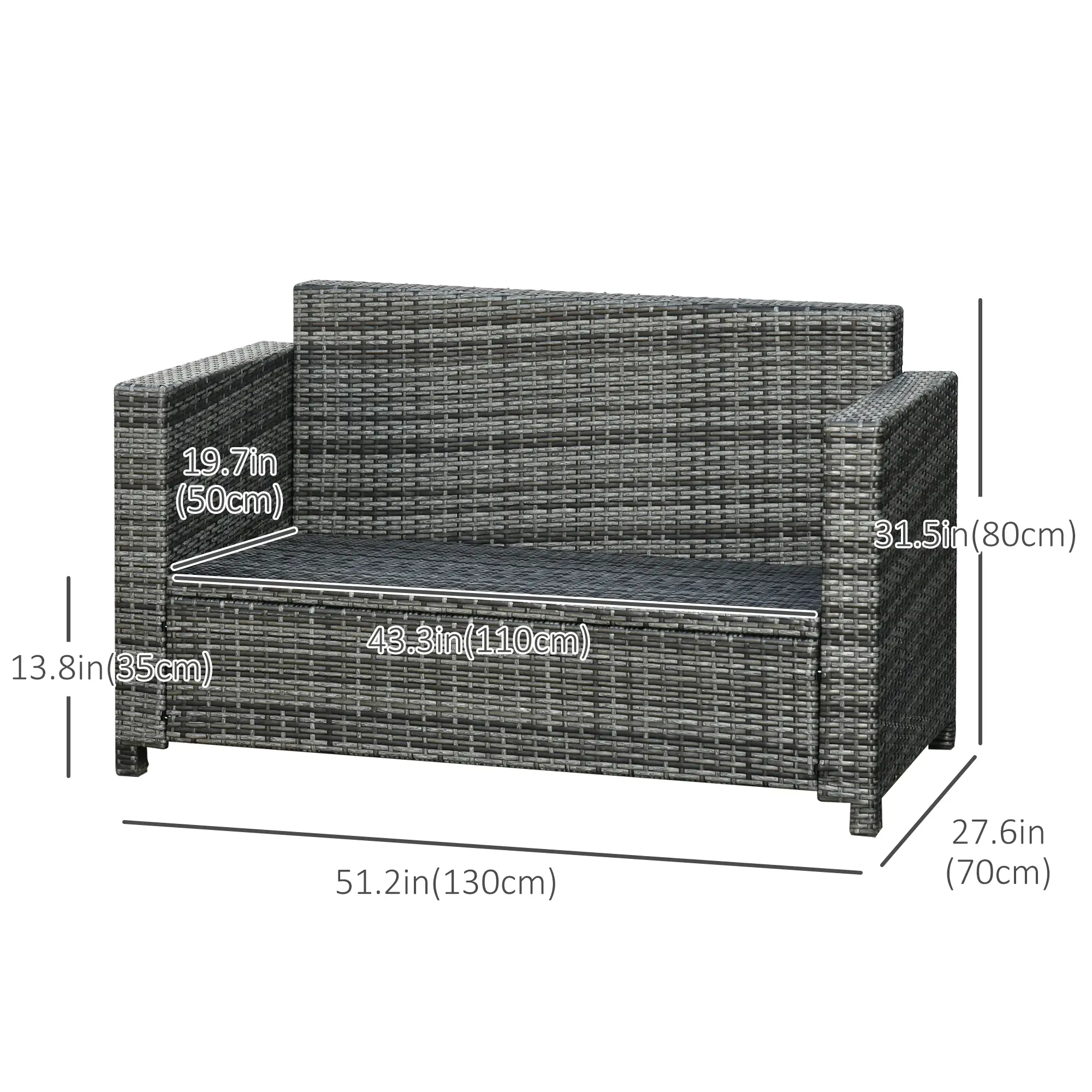 2 Seat Patio Loveseat, Wicker Sofa Chair, Outdoor Rattan Furniture, Grey