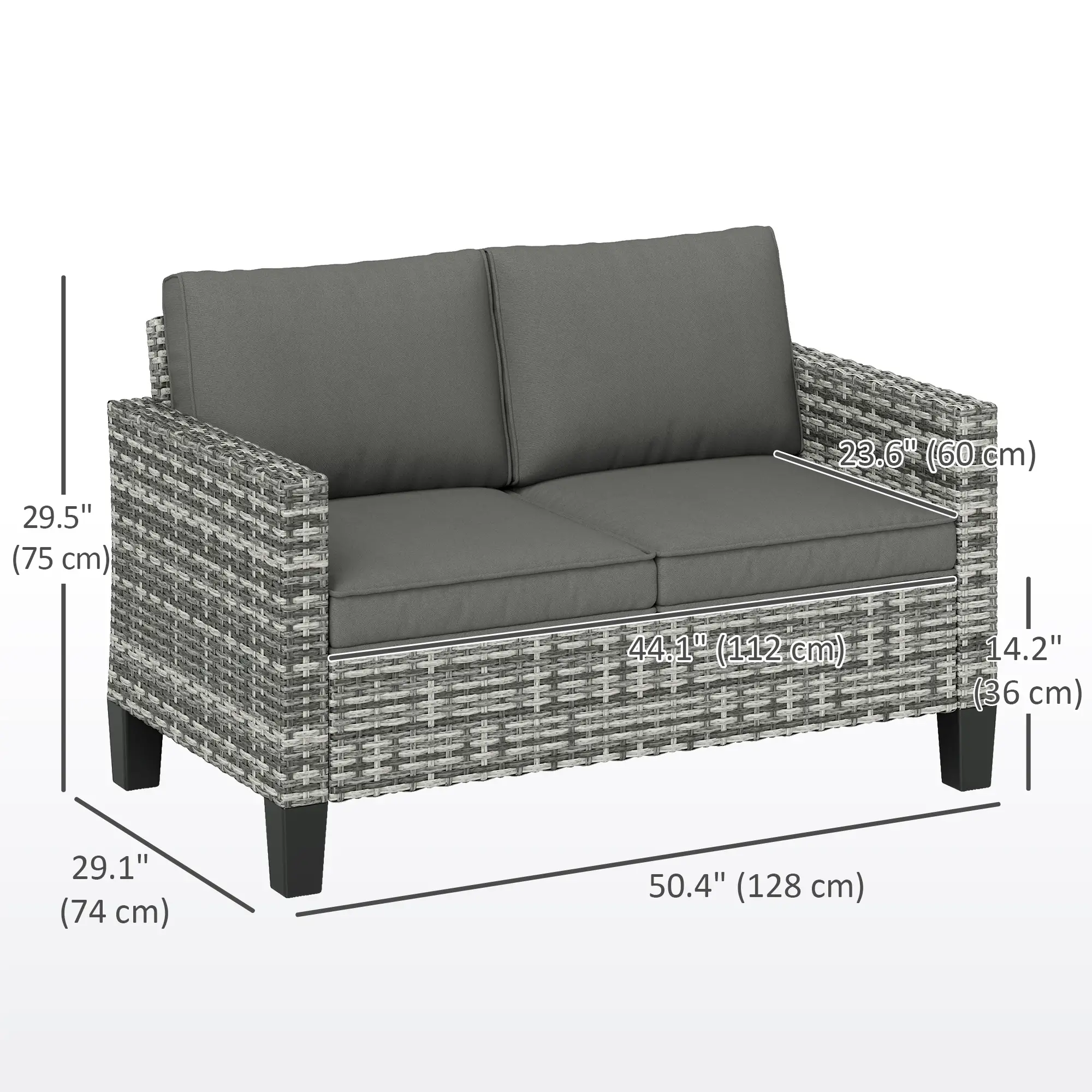 2 Seater Rattan Outdoor Sofa with Cushions, Dark Grey