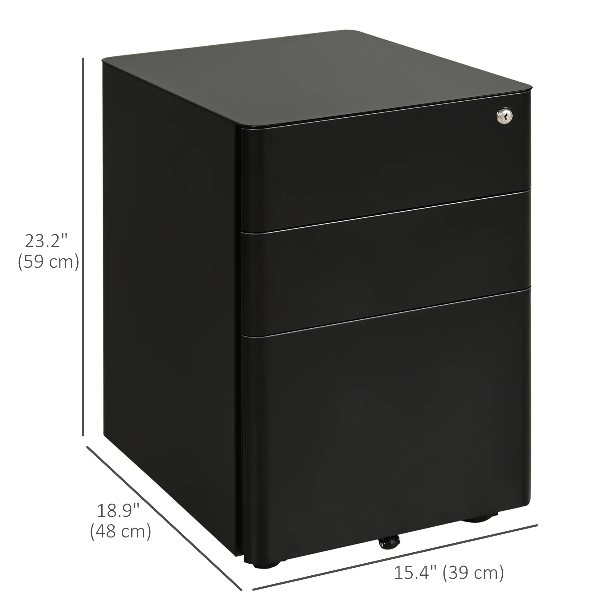 3 Drawer Metal Filing Cabinet, Mobile with Wheels, Black