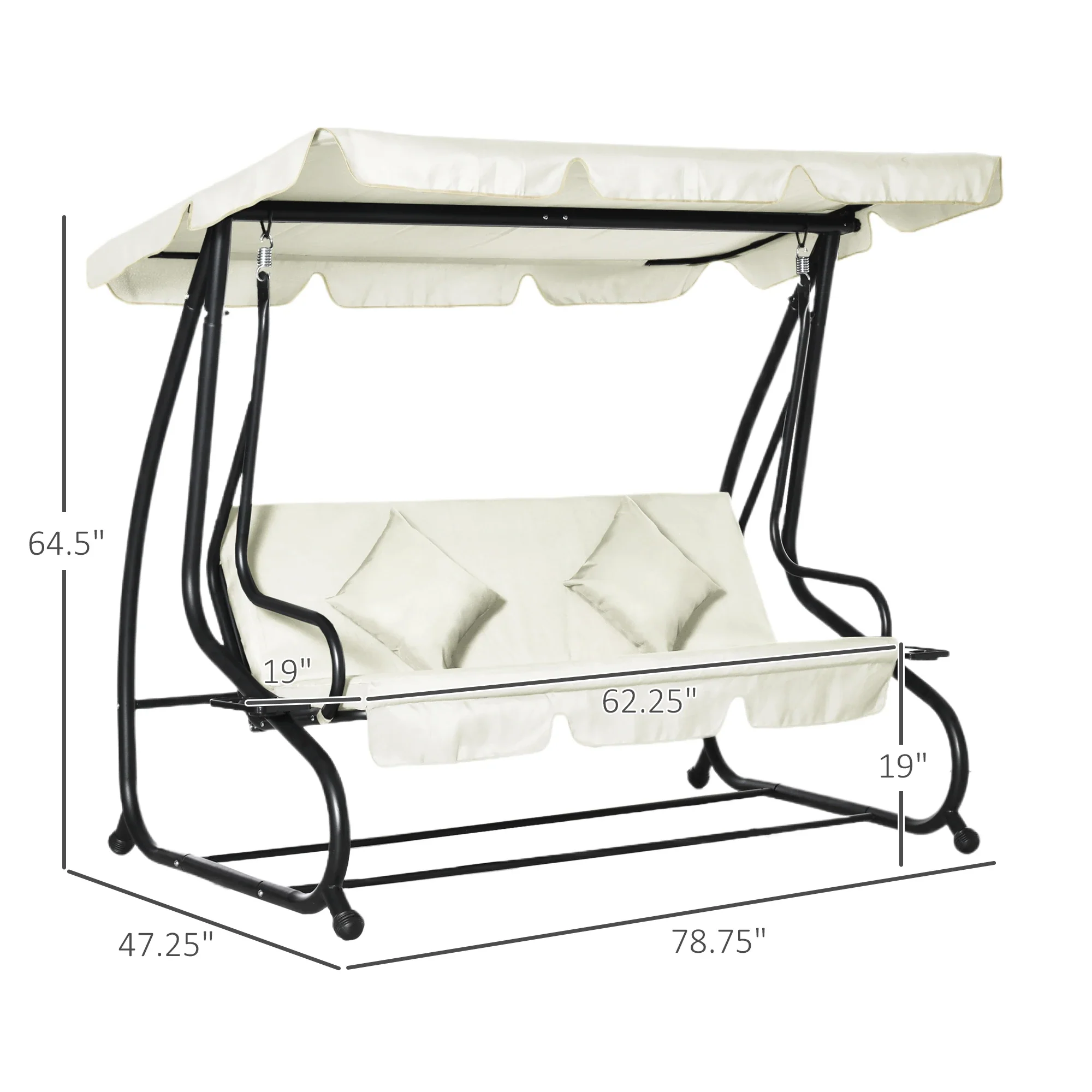 - Cozy Leisurely Time: The padded cushions and two pillows provide longtime's sitting comfort on this outdoor swing bench and the built-in cupholders keep your favorite drinks at hand.