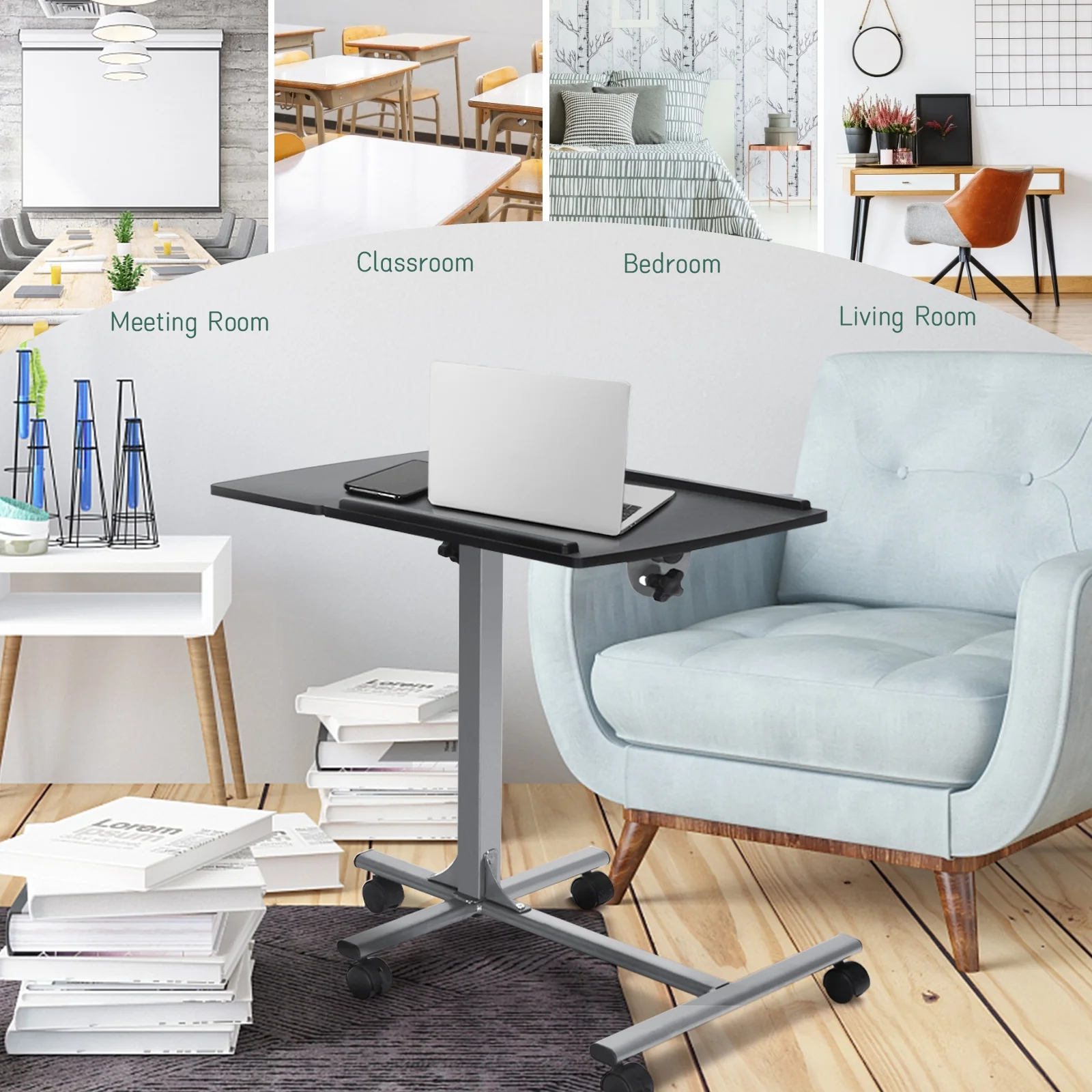 This versatile laptop desk cart features a durable steel frame and MDF tabletop, offering adjustable height and tilt for ergonomic comfort. With lockable wheels for mobility and a compact design, it's perfect for home offices, living rooms, or study areas, providing a flexible workspace solution.