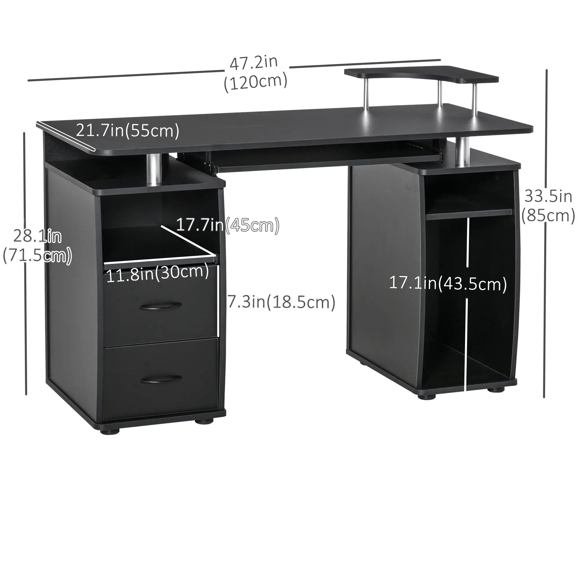 Computer Desk With Keyboard Tray, CPU Stand, Drawers, Black
