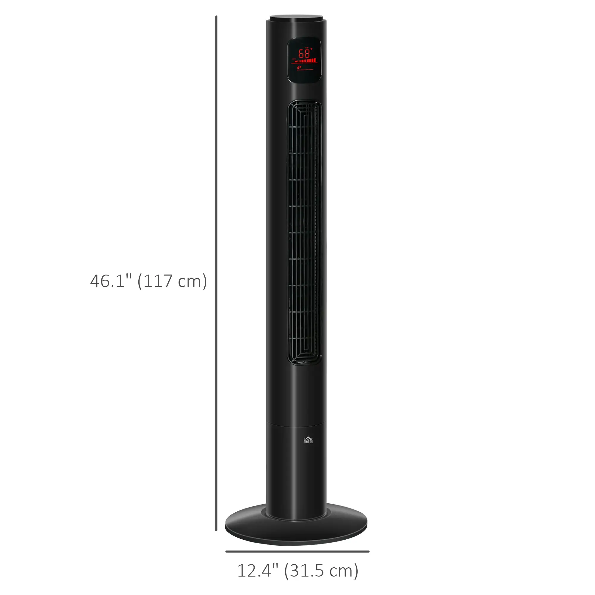 Freestanding Tower Fan, Oscillating, 3 Speed, 12h Timer, LED Panel, Remote, Black