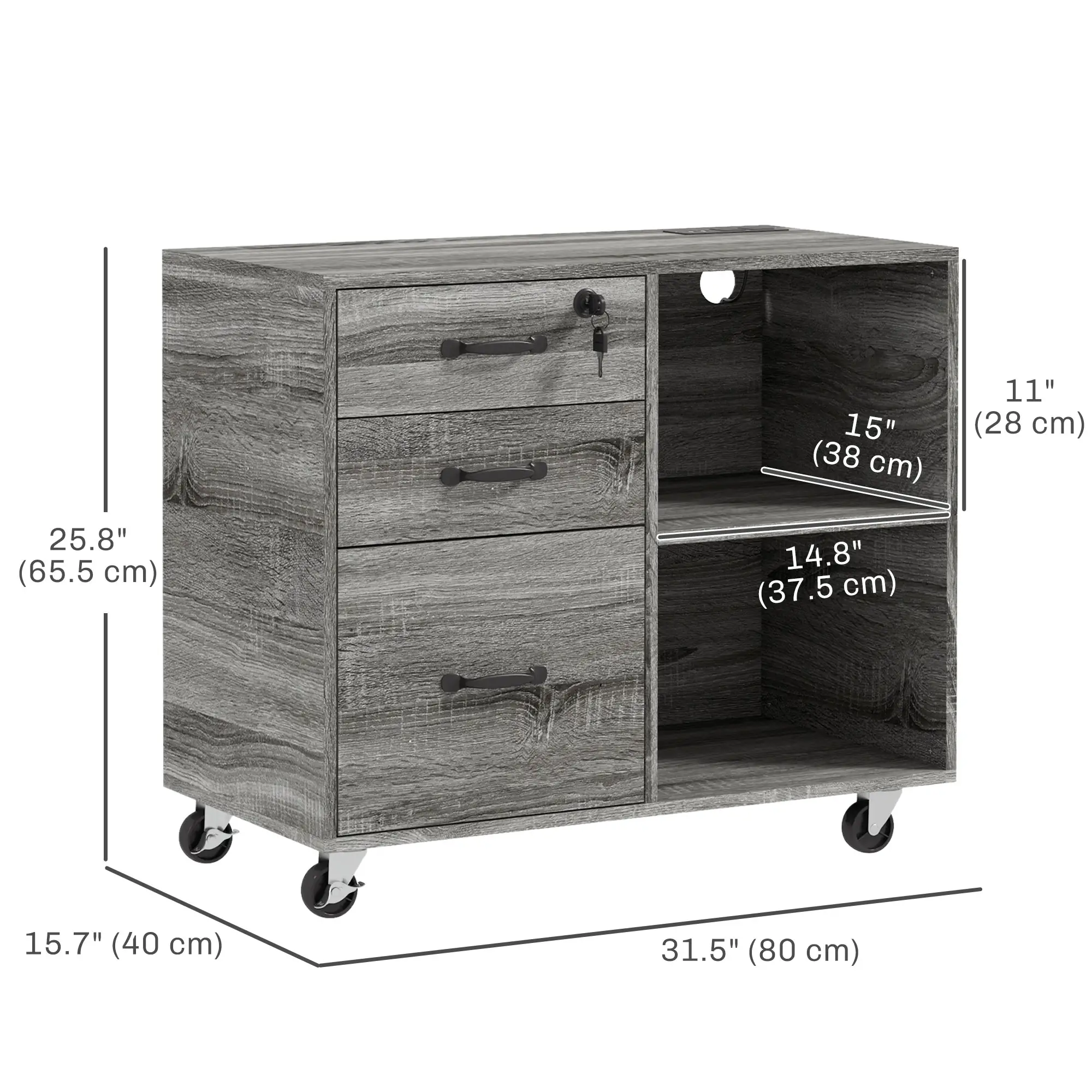 Upgrade your home office with this versatile file cabinet, combining sleek storage with a printer desk. Features include built-in AC outlets and USB ports for charging, a lockable top drawer for secure document storage, and wheels for easy mobility. Perfect for organizing office essentials with style.