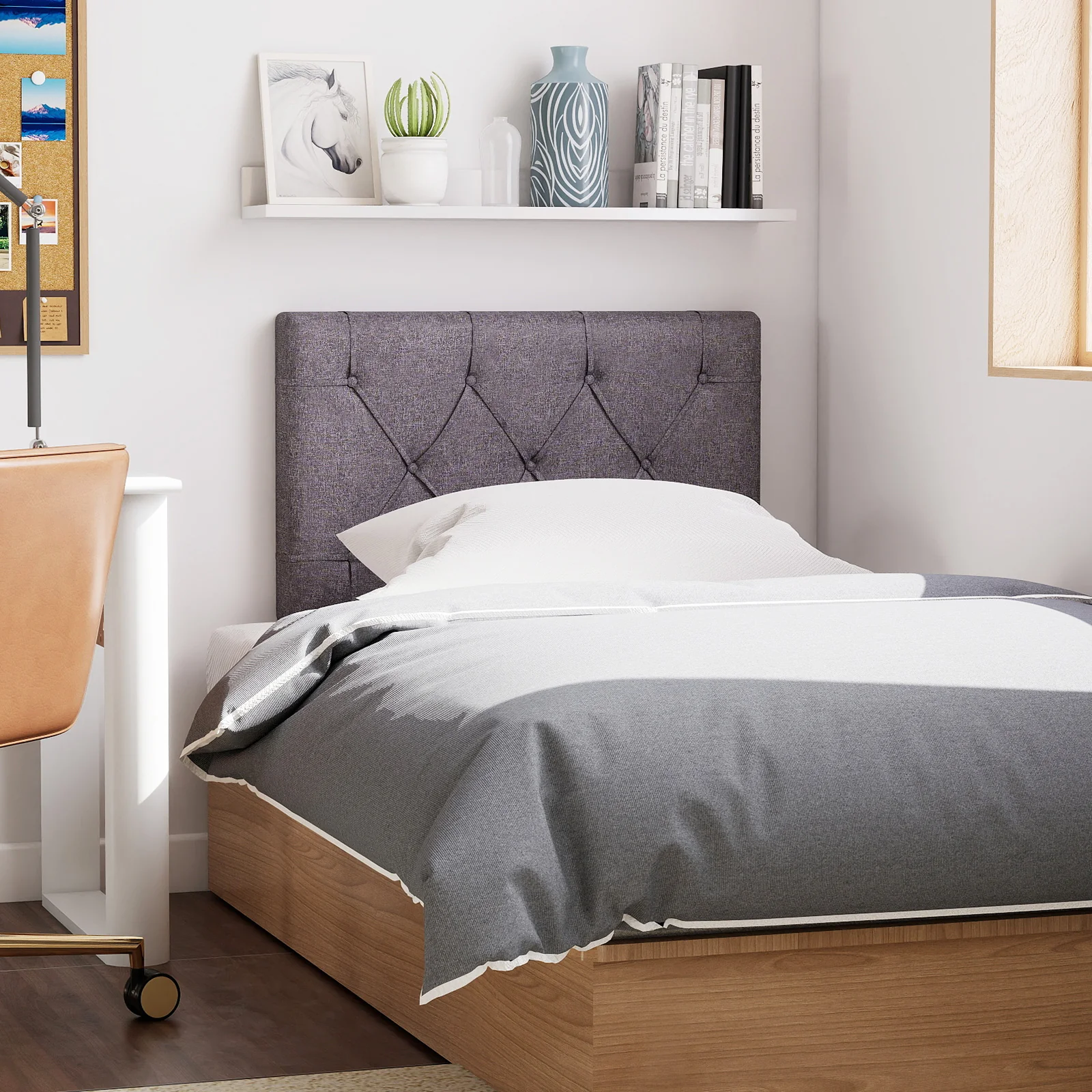 Upgrade the aesthetic appeal and comfort of your bedroom with this upholstered headboard tailored for twin size beds.