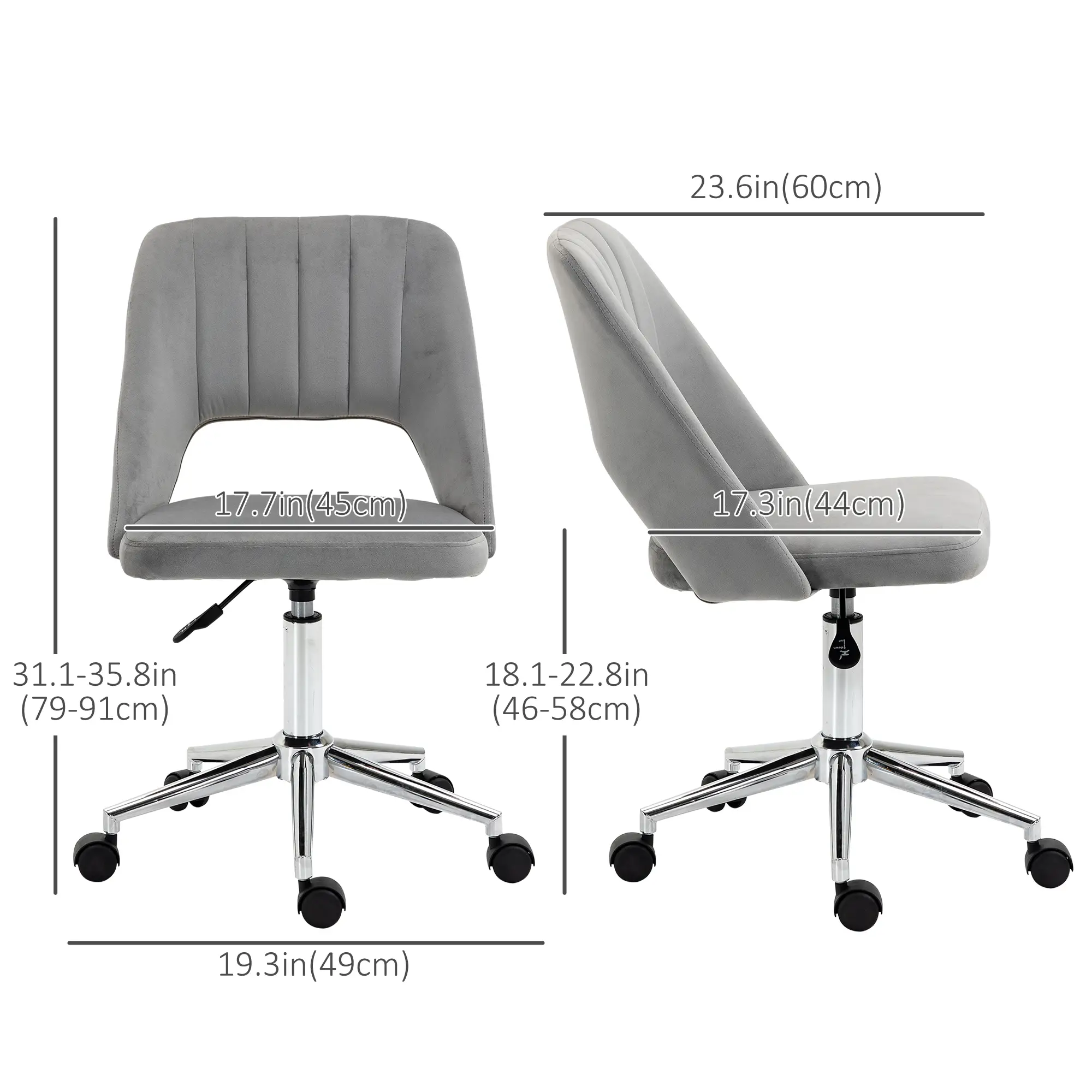 - Seat Dimension: 17.7" W x 17.3" D x 18.1"-22.8" H (45 x 44 x 46-58 cm)